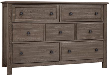 Made in the USA; this dresser shown in driftwood grey finish has seven drawers and is made from solid American white oak. Its design elements create a look that fits farmhouse; loft; cottage; and coastal spaces.Read More