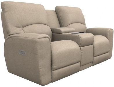 The Cassian power reclining loveseat with console, Headrest, and Lumbar offers personalized comfort with independent power controls for reclining, headrest, and lumbar support. Plush cushioning, tapered arms, and a center console with storage and cup holders enRead More