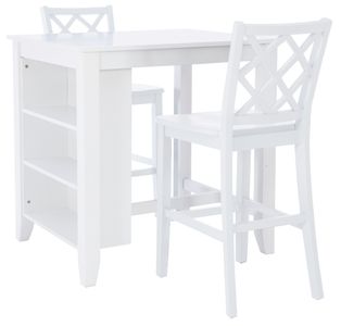 Make the most of your dining area with this tasteful and efficient 3-piece counter-height set. Perfect for cozy kitchens, apartments, or breakfast nooks, this trio includes a sturdy white counter table with built-in open shelving for easy storage of dishes, cookbooks, or decorative accents.Read More