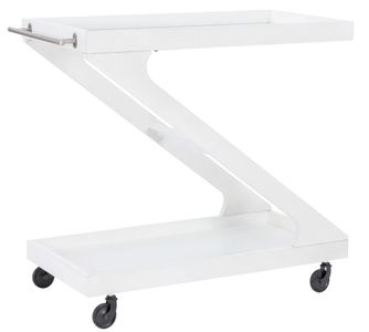 Transform any gathering into a memorable experience with this sleek and modern Z-shaped bar cart. Crafted with a durable solid wood frame in with 3 finish options, this bar cart features a tempered glass top that adds a touch of elegance.Read More