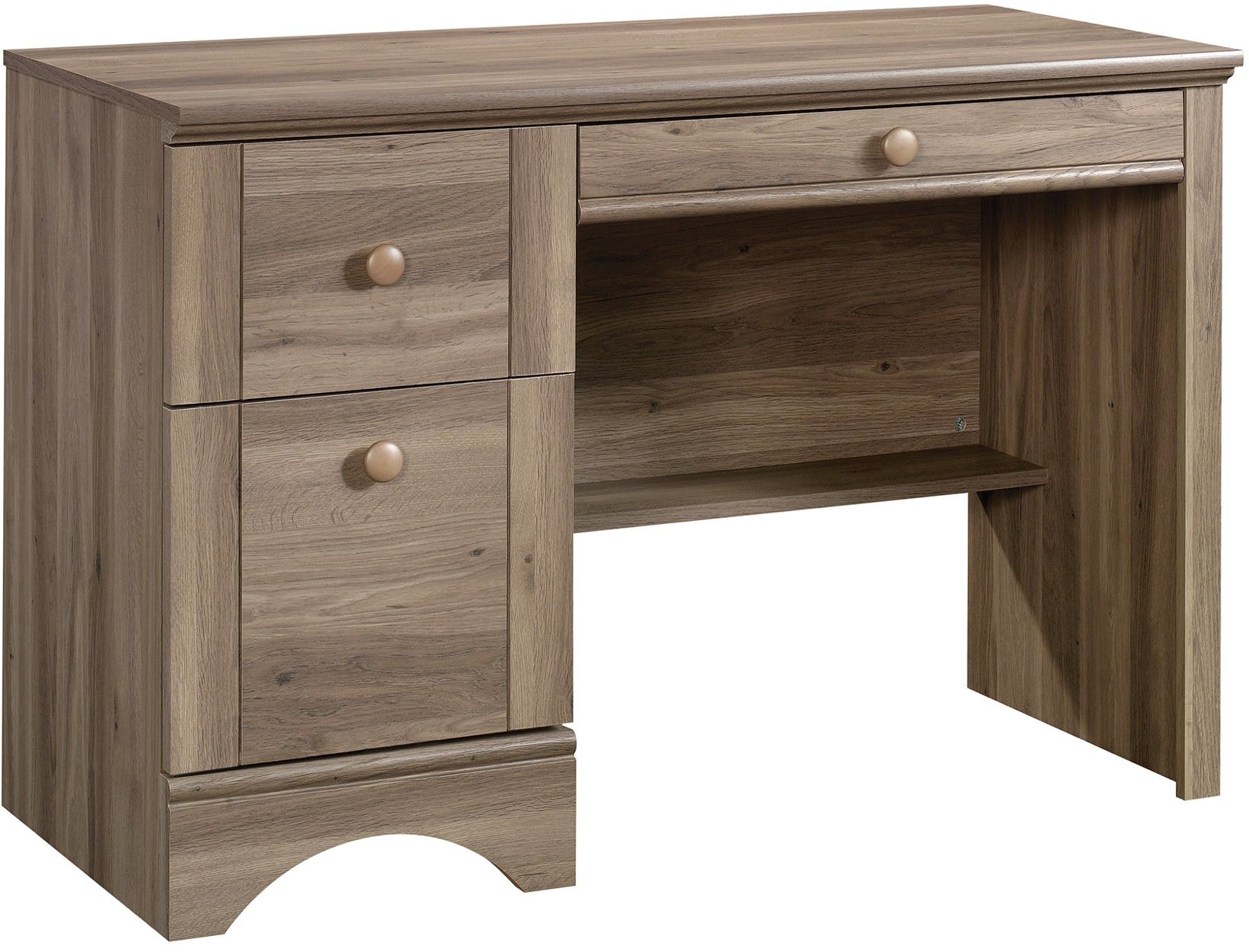 Looking to give your home office or workspace a fresh new update? Well look no further. This computer desk from the Harbor view collection is just for you! Its spacious desk top surface provides you with ample amount of room for all your must-have desk essentials - laptop, collection of notepads, cup of pens and of course your coffee mug. It features a large easy-gliding drawer/shelf with a flip-down panel for your keyboard/mouse. It also includes two storage drawers that open and close on smooth metal runners for easy access storage of all your miscellaneous office items. The lower drawer holds letter-size hanging files so you can keep all your important files and documents organized! With its simple design and cottage-inspired style, this attractive desk adds charm and beauty no matter where it stands! Finished on all sides in Salt Oak, this computer desk will have you feeling motivated and ready to get the job done.
