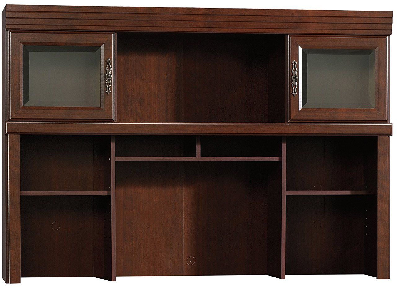 Add a little extra storage to your home office with this hutch from the Heritage Hill collection. The cubbyhole storage and adjustable shelves provide you with room for all your office essentials – envelopes, manuals, snacks and more! It also features two framed, safety-tempered glass doors. It attaches to computer credenza 404944 to give you the completed look. Finished in Classic Cherry, this hutch is the solution for all your storage woes.