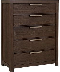 Vaughan-Bassett American Modern 5 Drawer Chest with brushed metal bar pull and mocha finishRead More