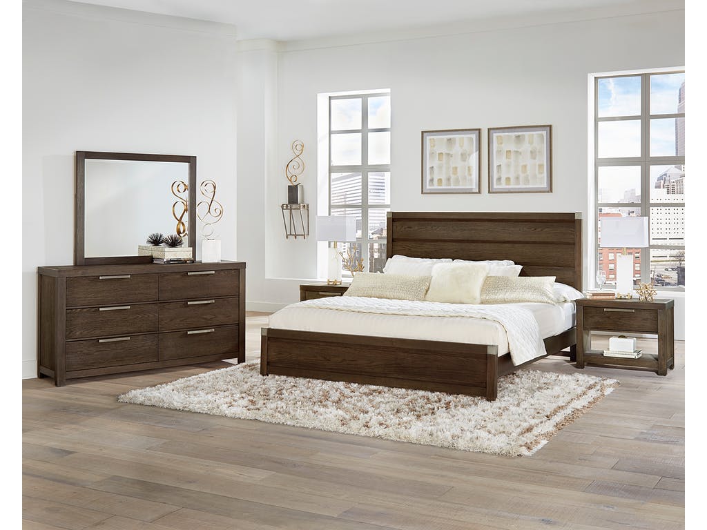 Vaughan-Bassett American Modern Queen Plank Bed with mocha finish and plank headboardRead More