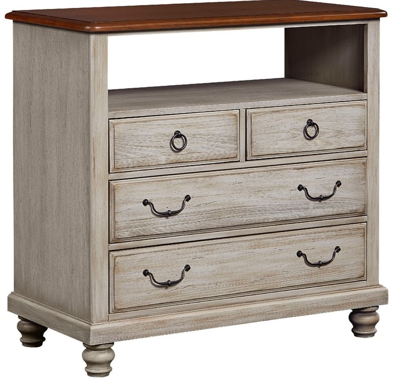 Relaxed traditional styling. Gracefully turned feet. Rustic white finish with cherry topRead More