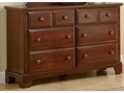 Create a sophisticated and elegant atmosphere in your home with this six drawer dresser chest. This dresser has curved bracket feet that are complemented by the straight side panels. The drawers are suspended by a metal on metal guide system that makes for easy operation.