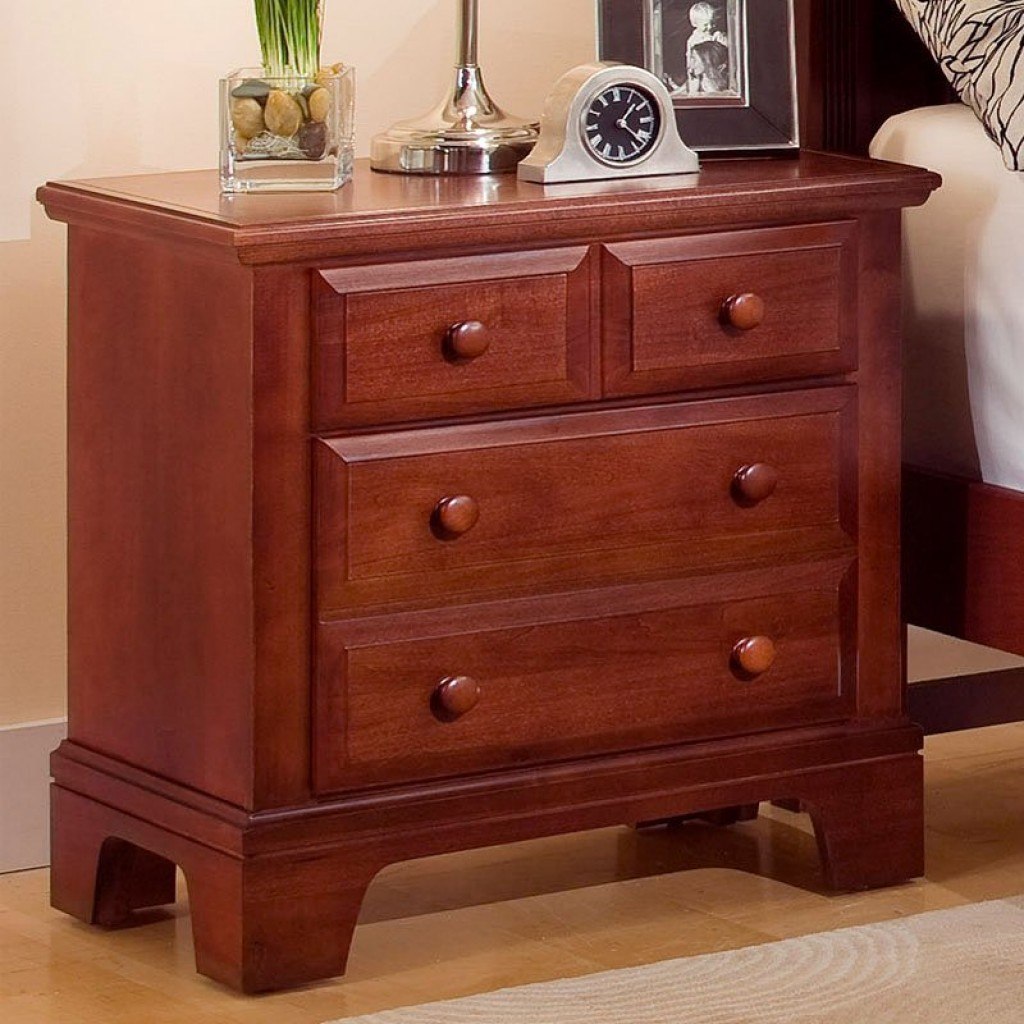 Accent your bedside with this fabulous two drawer night stand. The sharp crisp edges of this nightstand create an elegant high class look that is sure to bring style to your room. The front facade of this night table are accented with round knobs that make operation effortless. The bracket feet slightly lift the night stand off the ground giving this drawer chest glorification. Pair a dresser drawer next to this nightstand and have additional matching storage that will complete your bedroom.