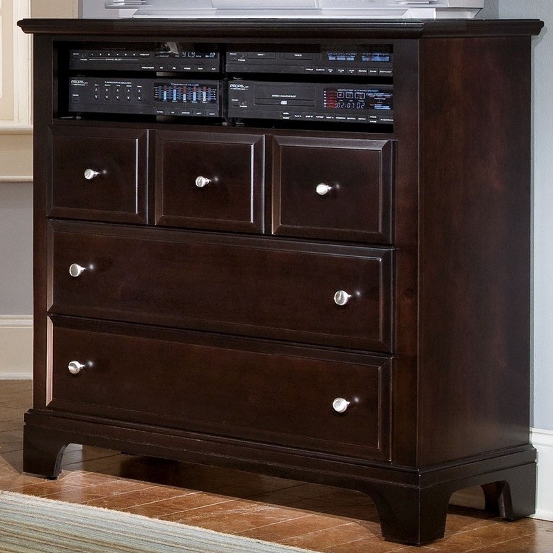 Traditional style and modern electronics coexist perfectly with this media cabinet. It features a great spot for your bedroom TV set; DVD player and other electronic components and room. Make use of the three drawers for storing clothing; your media collection; and other miscellaneous items.