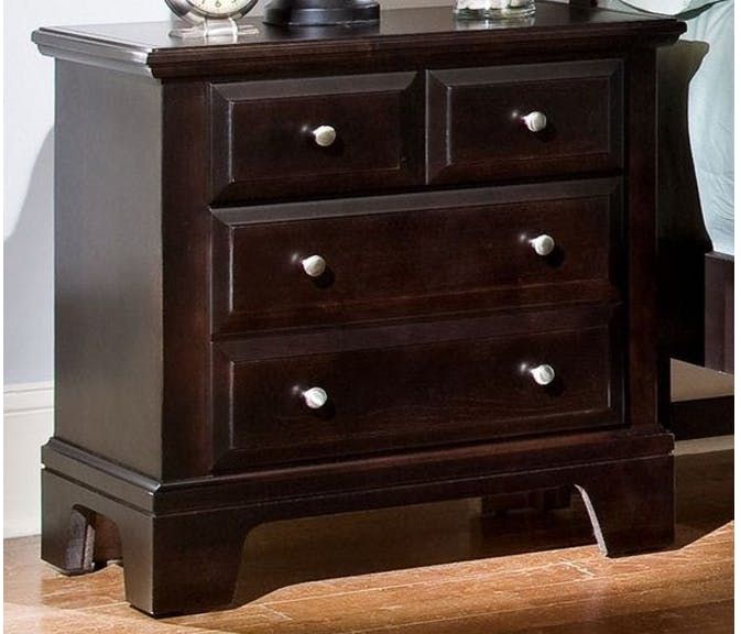 Accent your bedside with this fabulous two drawer night stand. The sharp crisp edges of this nightstand create an elegant high class look that is sure to bring style to your room. The front facade of this night table are accented with round knobs that make operation effortless. The bracket feet slightly lift the night stand off the ground giving this drawer chest glorification. Pair a dresser drawer next to this nightstand and have additional matching storage that will complete your bedroom.