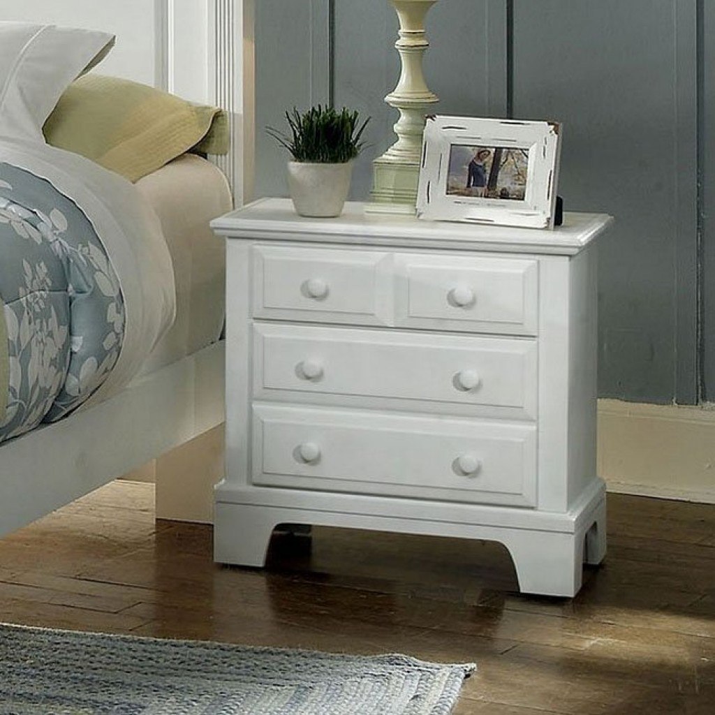 Accent your bedside with this fabulous two drawer night stand. The sharp crisp edges of this nightstand create an elegant high class look that is sure to bring style to your room. The front facade of this night table are accented with round knobs that make operation effortless. The bracket feet slightly lift the night stand off the ground giving this drawer chest glorification. Pair a dresser drawer next to this nightstand and have additional matching storage that will complete your bedroom.