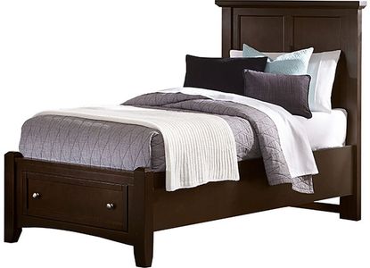 You can have bedroom furniture that is made in the USA with this mansion storage bed. Its versatile style features simple molding and recessed panels on the headboard and framed panels on the two drawers of the low profile footboard for a casual appeal. Perfect for a contemporary to transitional decor, this storage bed will easily update the look of any master bedroom.