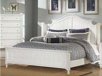 Vaughan Bassett Carolina Cottage Bed offers a shelter style and sleigh with a snow white color finish. These styles can come with under bed storage capablities with a framed edges and round knob hardware.Â