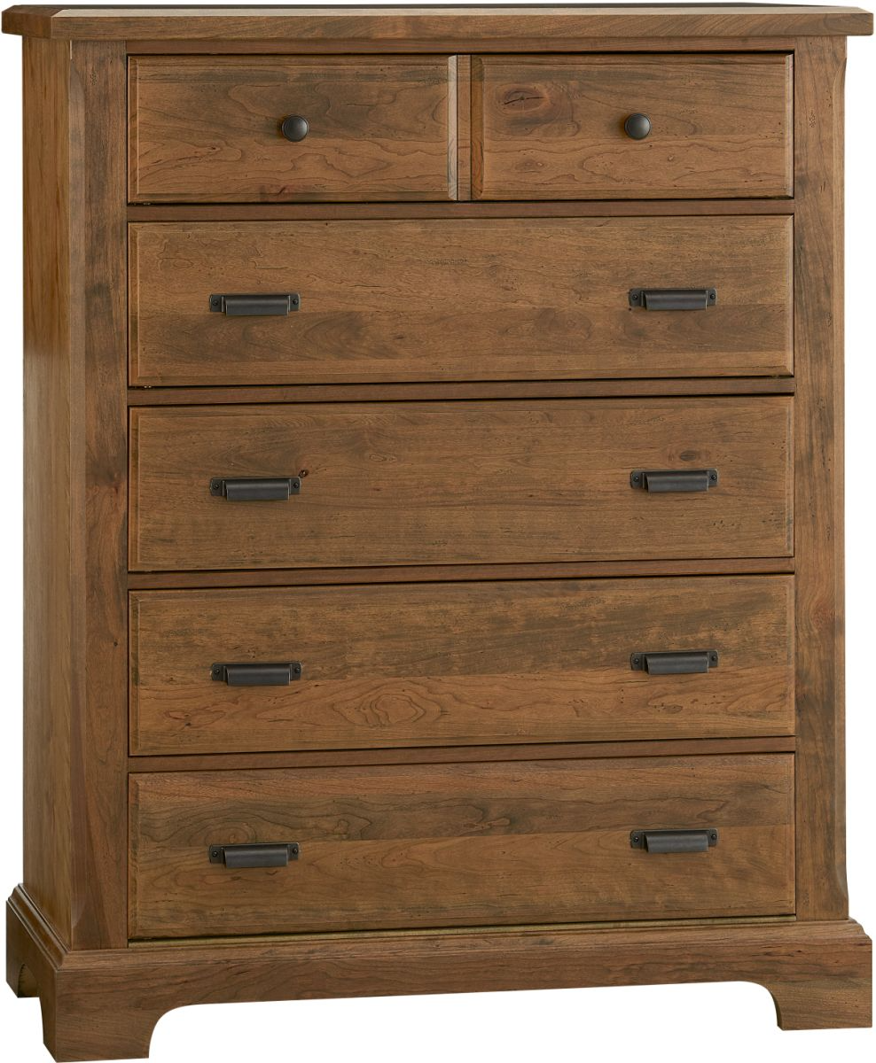 Five drawer chest in solid rustic cherry and cherry veneers. With rustic cherry; we have left in many of the cherry knots to accentuate the unique grain pattern only found in American cherry lumber. Features custom-designed drawer hardware includes cup pulls and knobs with an antiqued bronze finish.Read More