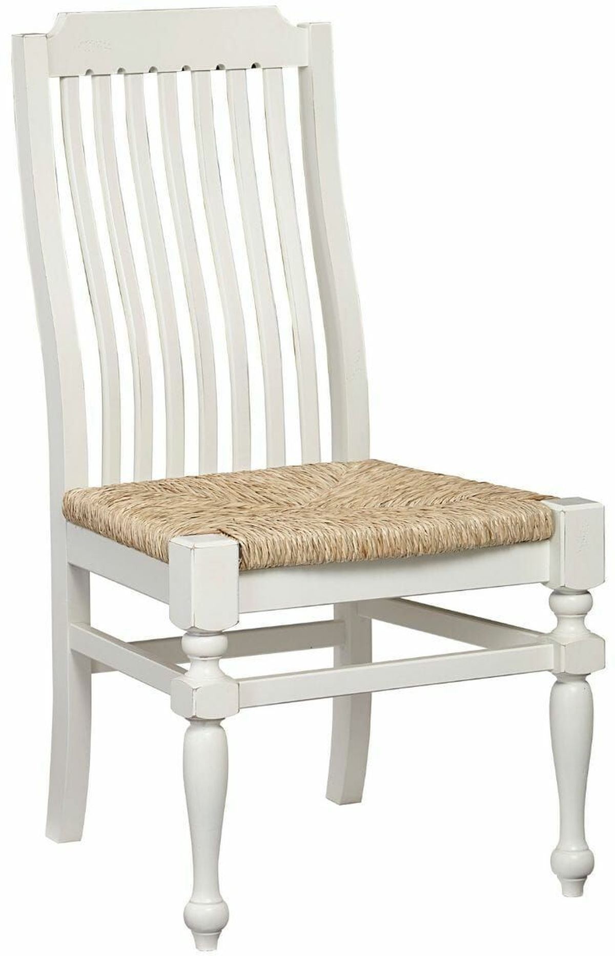 The Co. of Scotsman. American Heirloom Seagrass Side Chair is made and solid hardwoods from Appalachian. The iconic, antique styled side chair is part of the Traditional Heirloom Collection and is a tribute of American craftsmanship of value. Featuring a soft cream finish on turned feet.
