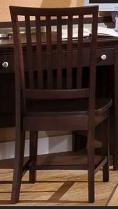 Vaughan Bassett office chair is made of solid wood construction and metal hardware. This office chair offers a saddle seat with a slatted back style.
