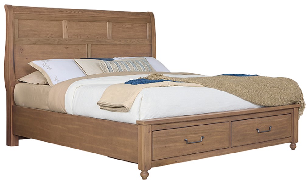 Elevate your bedroom with this Queen Mansion Bed from Vista. The item itself provides compliments to other furniture surrounding it. Make a bold statement by incorporating this stunning furniture into your home. This sleigh bed offers an old-world charm with its shaped bedpost and heavy cap rail.Read More